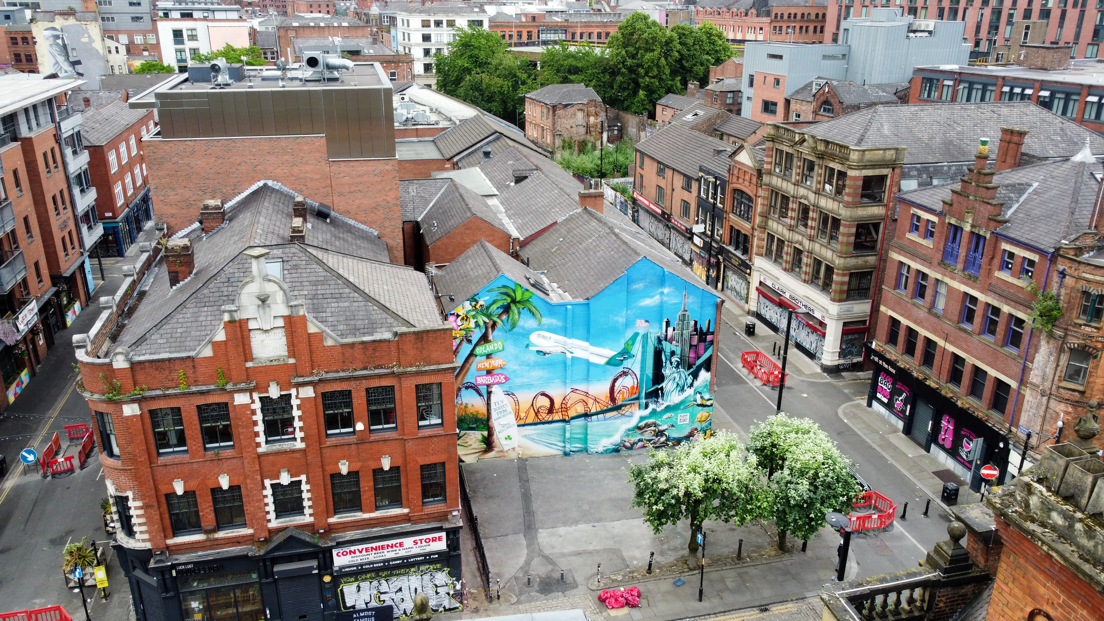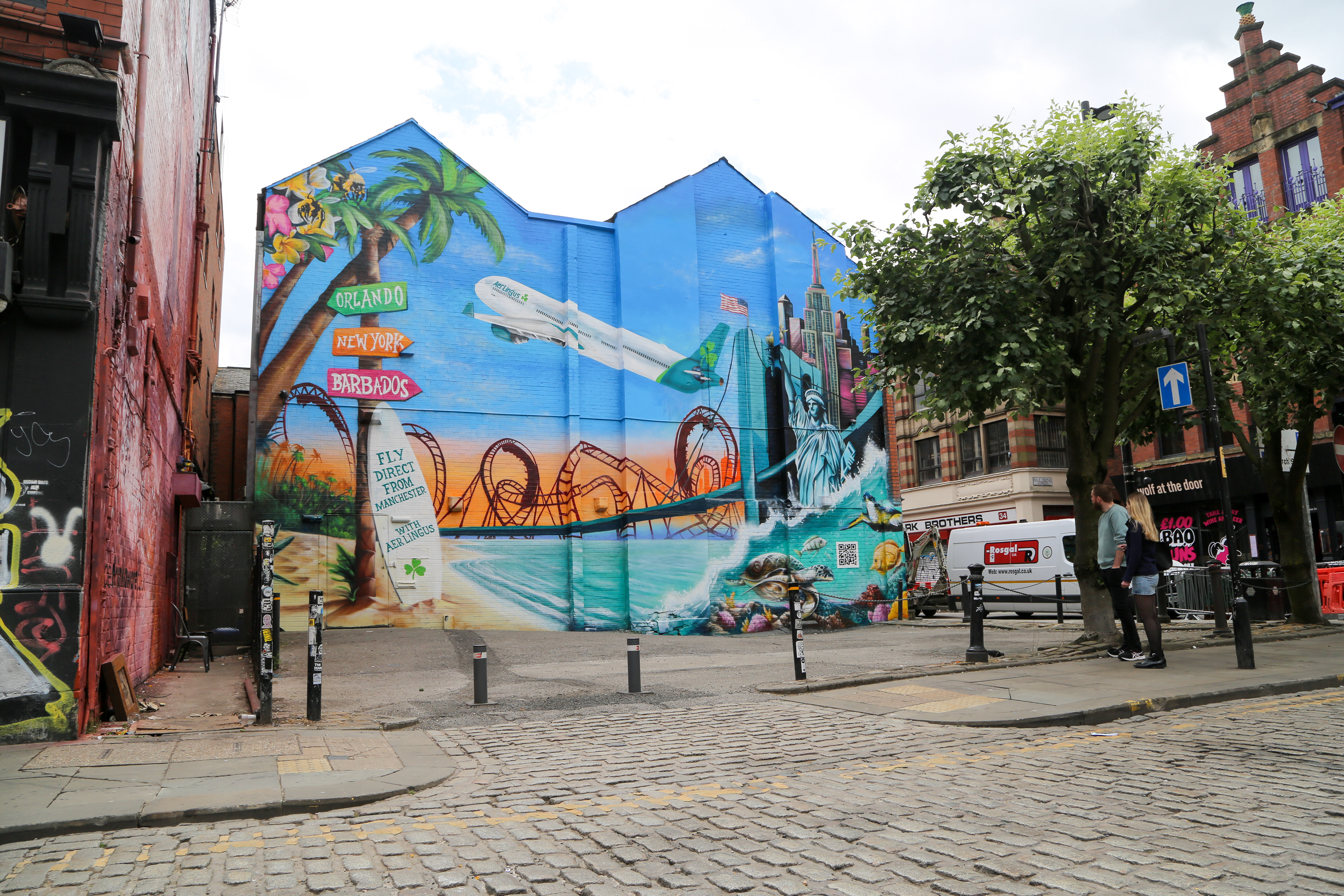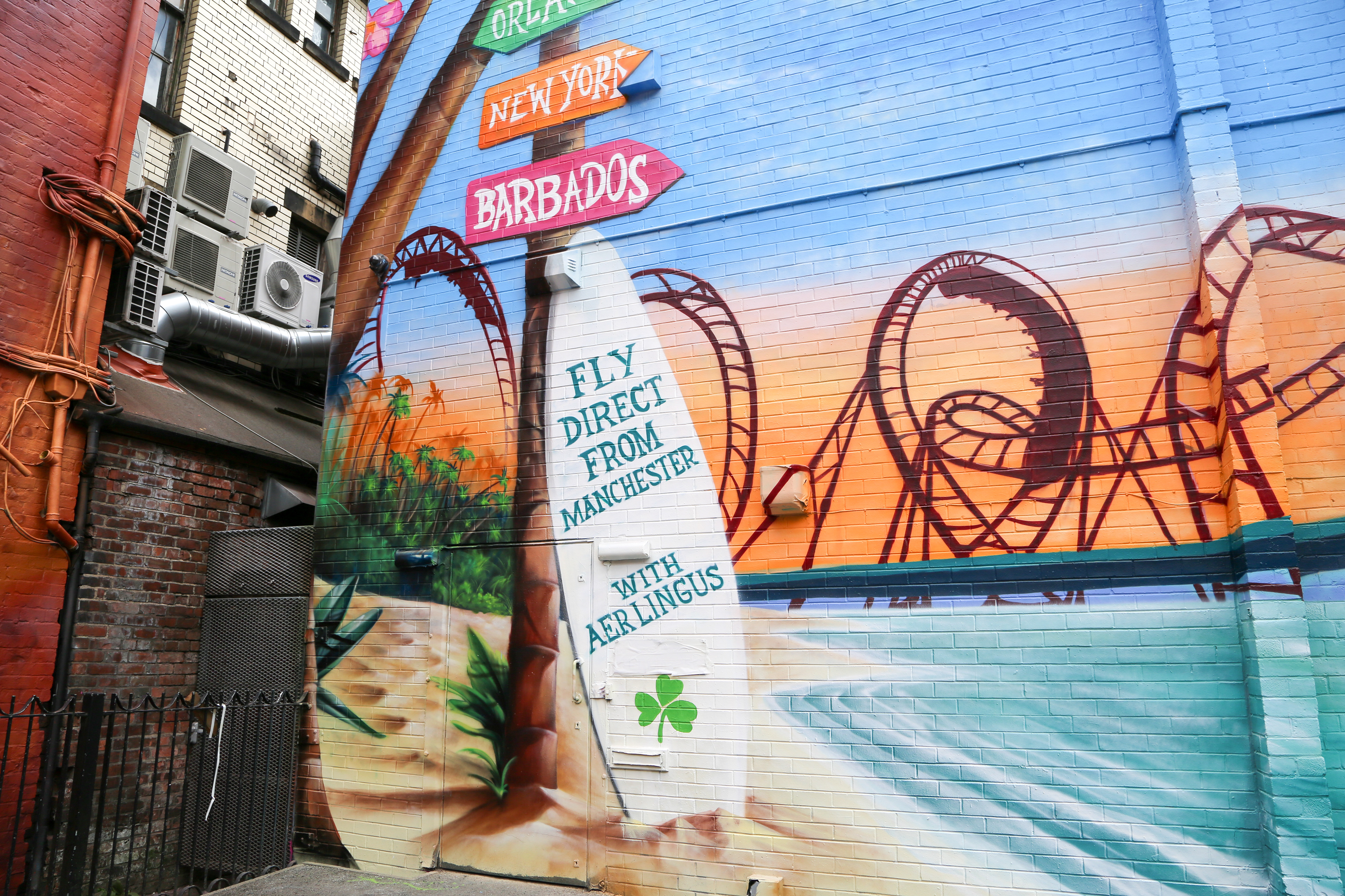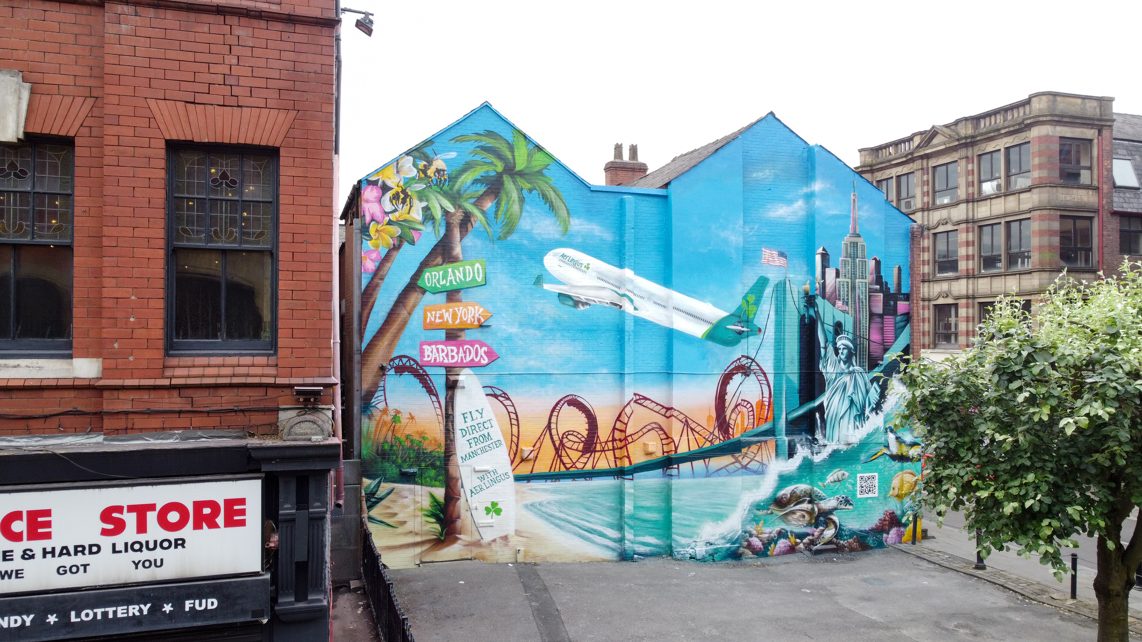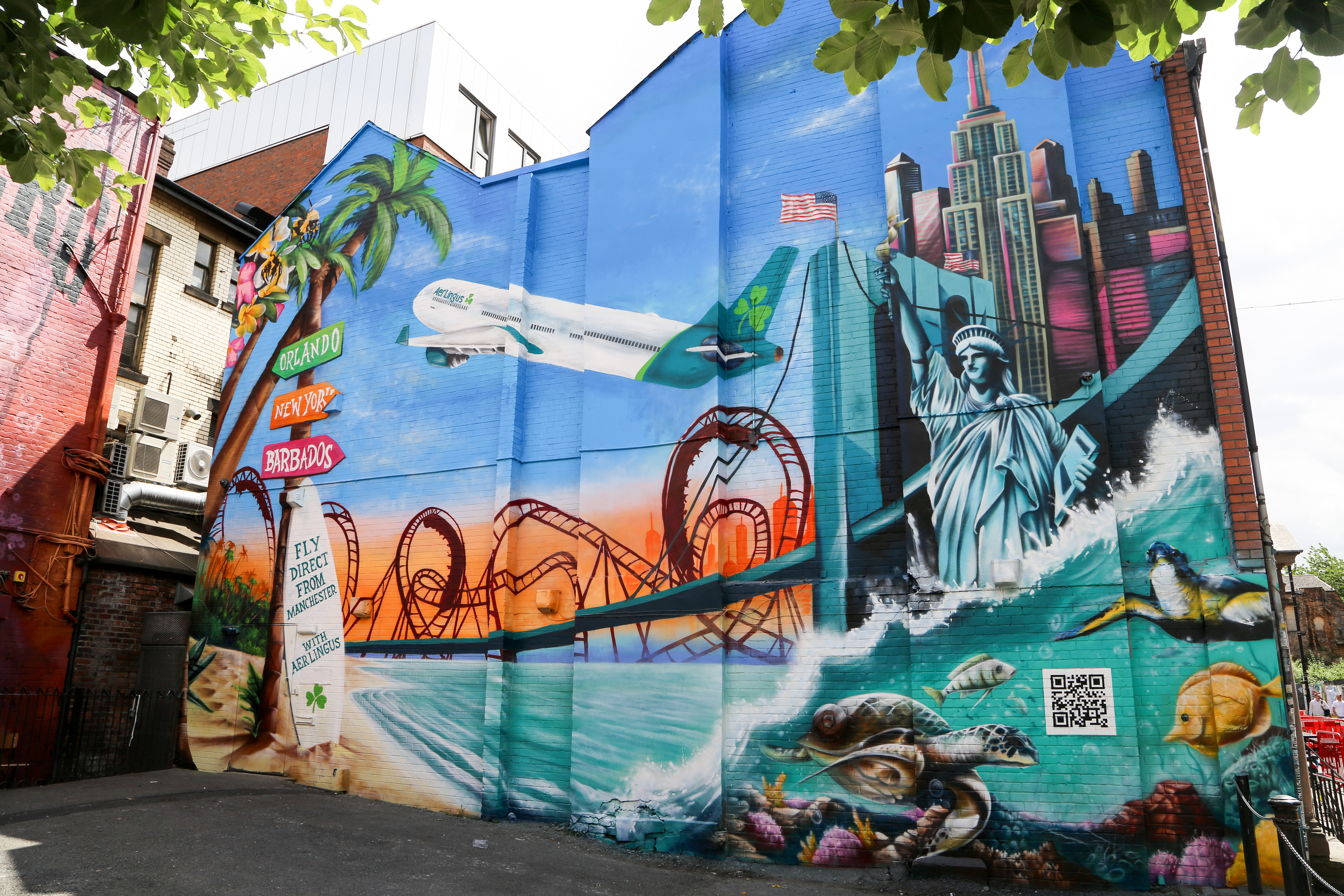 Inspiring Mancunians to Go Direct to New York, Barbados, and Orlando with a mural right in the heart of Manchester's Northern Quarter.